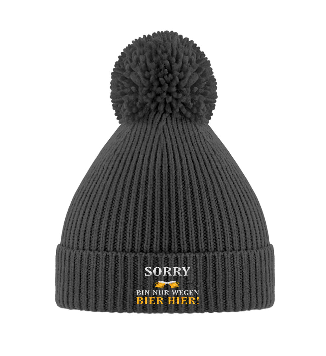 Nur wegen Bier hier - Bommelmütze mit Stick